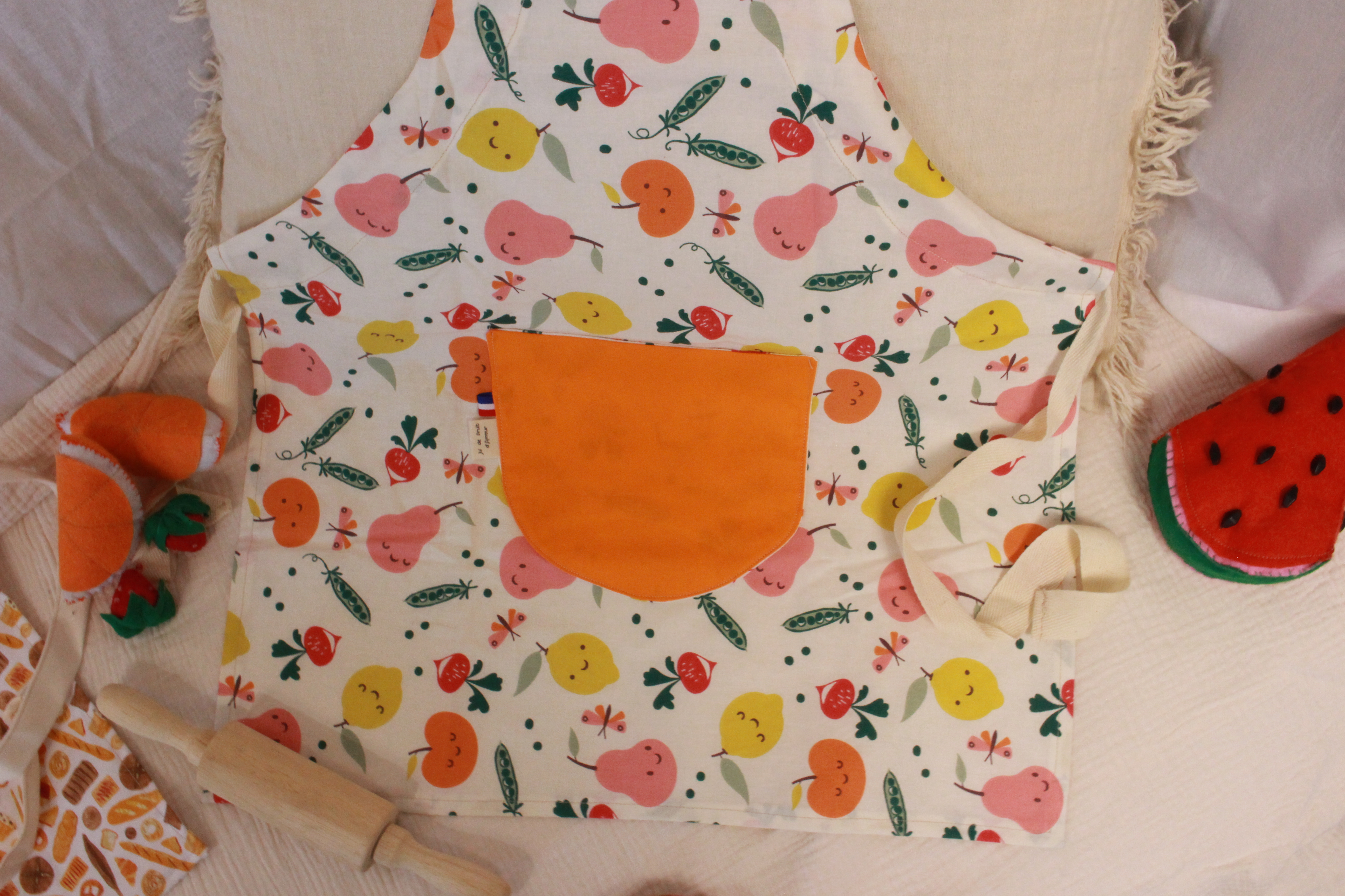 Bavoir à manches imperméable avec poche frontale