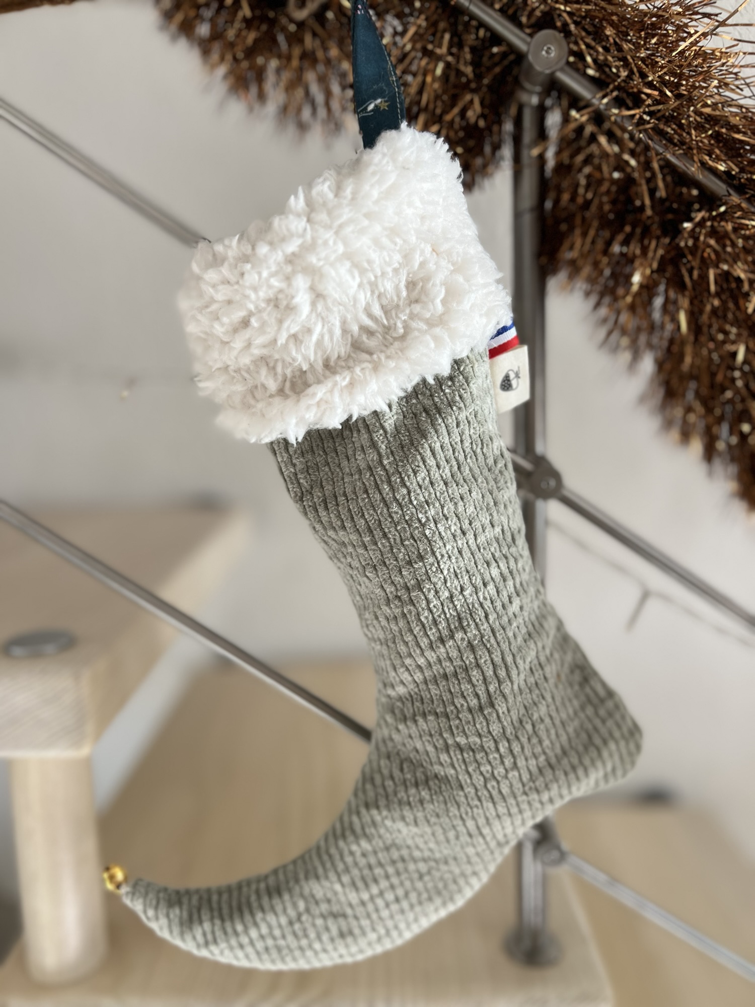 Petit coussin en forme d’ Etoile de Noël à suspendre ou pour décorer votre pièce de vie avec une douceur festive.